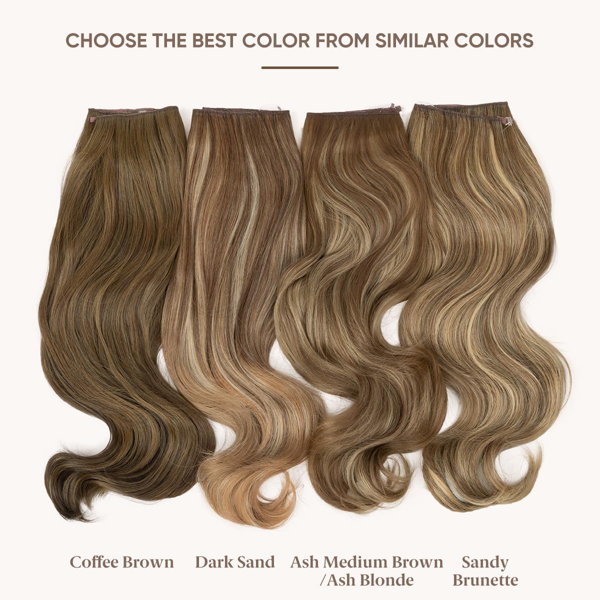 SARLA Invisible Wire Hair Extensions with 3 Clips Long Synthetic Wavy Curly Hairpiece Adjustable Transparent Headband for Women 22 Inch Ash Medium Brown/Ash Blonde Highlights