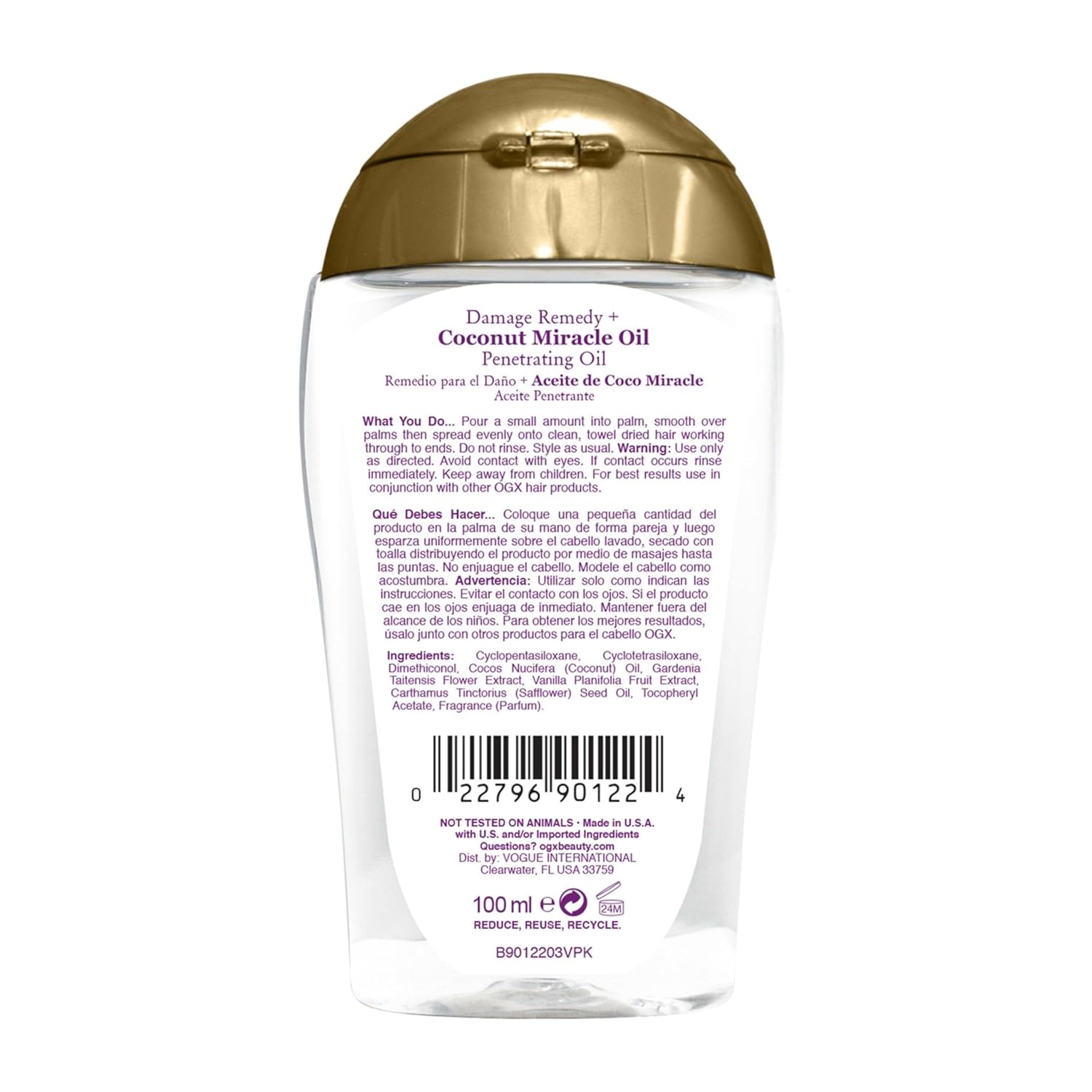 OGX Extra Strength Damage Remedy + Coconut Miracle Oil Penetrating Hair Oil Treatment, Extra Hydrating Anti-Frizz Oil for Coarse, Dry Hair, Paraben-Free, Sulfated-Surfactants Free, 3.3 oz