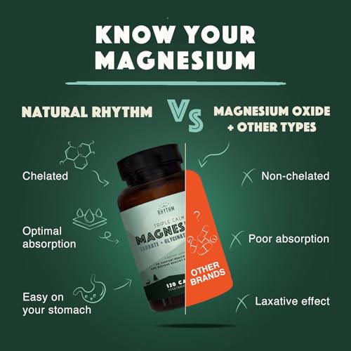 Specification: Natural Rhythm Triple Calm Magnesium 150 mg – 120 Capsules – Magnesium Complex Compound Supplement with Glycinate, Malate, and Taurate to Support Muscle, Nerve, and Cardiovascular Health