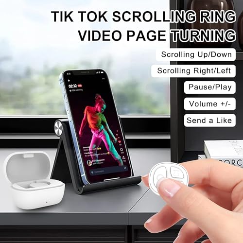【Tik Tok Scrolling Ring 】 : The tiktok scrolling ring makes laying in bed and reading ebooks or scrolling tiktok Youtube and instagram videos so much more comfortble, No more swiping with a heavy iPad iPhone that makes your arms sore, Pretty handy little ring remote for TikTok videos page up and down, volume + / -, play/pause, send a like,free your hands