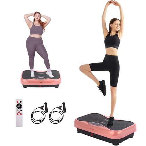 Whole Body Vibration Plate Exercise Machine – Power Vibrating Plate for Lymphatic Drainage Weight Loss, Shake Plate Exercise Platform with Touch Screen & Resistance Bands, Equipment for Women Men