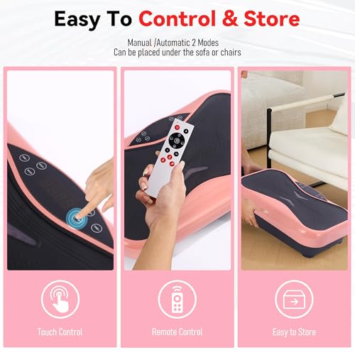 Smart LED Touch Screen – Control your session with the ultra-responsive LED touch panel or remote—adjust speed, time, and modes (pulse/auto/manual) in seconds! The comfortable footpad ensures a stable and enjoyable experience, and the non-slip suction cups keep the shake plate exercise machine securely in place.