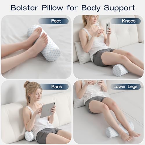 【Cooling Bolster Pillow for Bed】This roll pillow is made from premium ice silk fabric for instant cooling. The fabric is cool to the touch, perfect to combat unwanted night sweats and provide deep, refreshing sleep. The round neck pillow cover is easy to wash, removable, and machine washable.